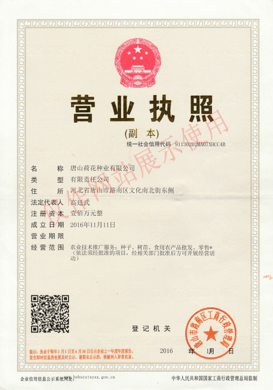 唐山荷花種業(yè)有限公司始創(chuàng)于1984年,一直秉承“科技為先,誠(chéng)信為本”的發(fā)展指導(dǎo)戰(zhàn)略,注冊(cè)商標(biāo)“荷花”牌,經(jīng)過(guò)三十多年的發(fā)展,建立了從親本選育、試驗(yàn)示范、生產(chǎn)檢驗(yàn)、精選加工、推廣銷(xiāo)售及農(nóng)業(yè)技術(shù)咨詢(xún)一體化的經(jīng)營(yíng)體系,目前擁有試驗(yàn)基地、繁育基地、制種基地、及規(guī)模化種子冷貯藏庫(kù),完善了由科研、檢驗(yàn)、生產(chǎn)、銷(xiāo)售各個(gè)配套環(huán)節(jié)。荷花牌系列種子正是我們?cè)趫?jiān)持“誠(chéng)信、品質(zhì)、開(kāi)拓、創(chuàng)新”的企業(yè)精神下打造的種子品牌,如今,在全國(guó)已形成強(qiáng)勢(shì)品牌效應(yīng),是一個(gè)值得信賴(lài)具有一定影響力的種子品牌,在全國(guó)廣大用戶(hù)中贏得了良好的口碑和信譽(yù)... ...